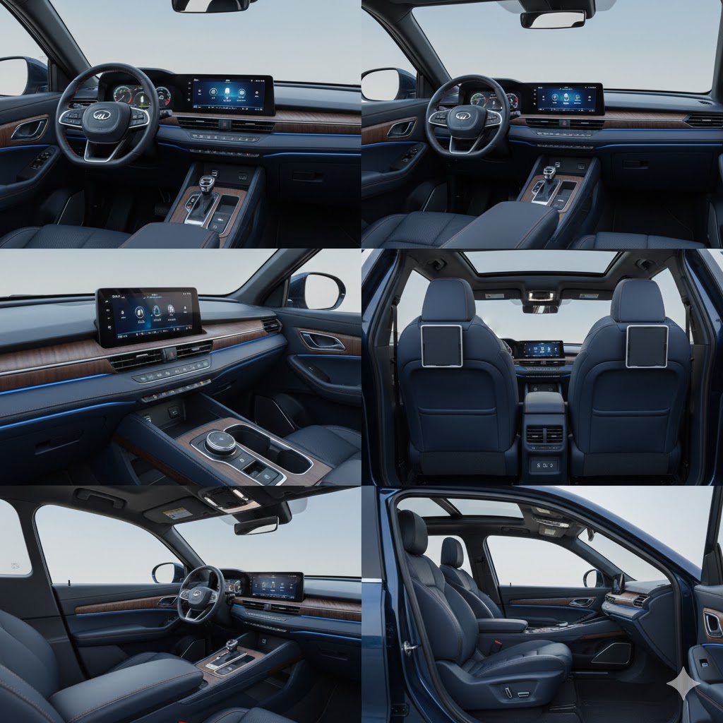• Triple-screen dashboard layout: Instrument cluster, central infotainment screen and front-passenger display – 3 screens are possible, which is rare in ICE SUVs.